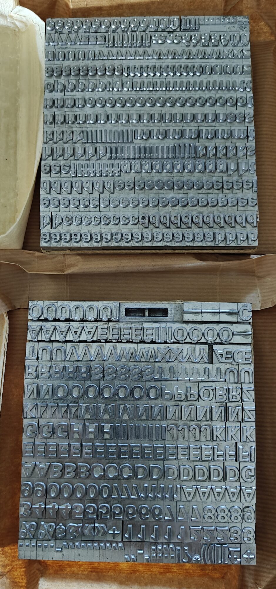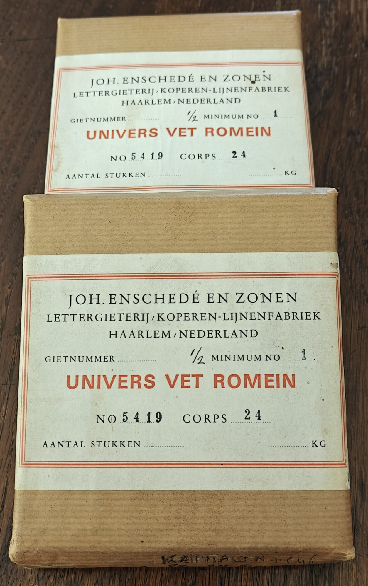 Aangeboden één half minimum corps 24 vet Romein Univers in originele verpakking. Nooit gebruikt.