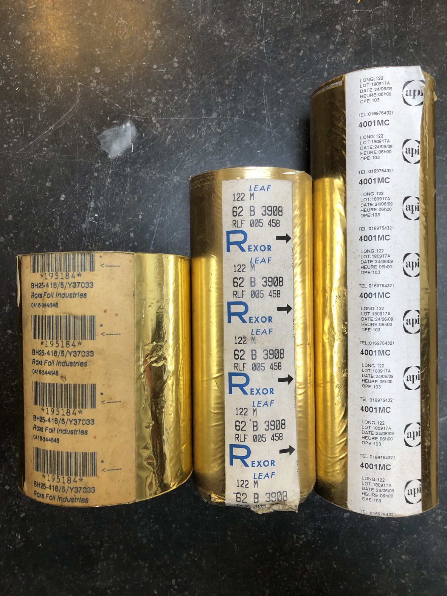 3 onaangebroken rollen verguldfolie.