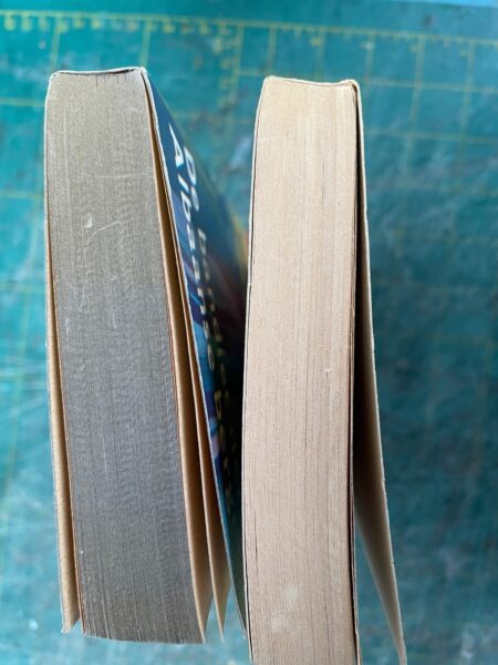 Verschillende exemplaren hebben een grijsgeverfde boeksnede en andere een papierkleurige.
