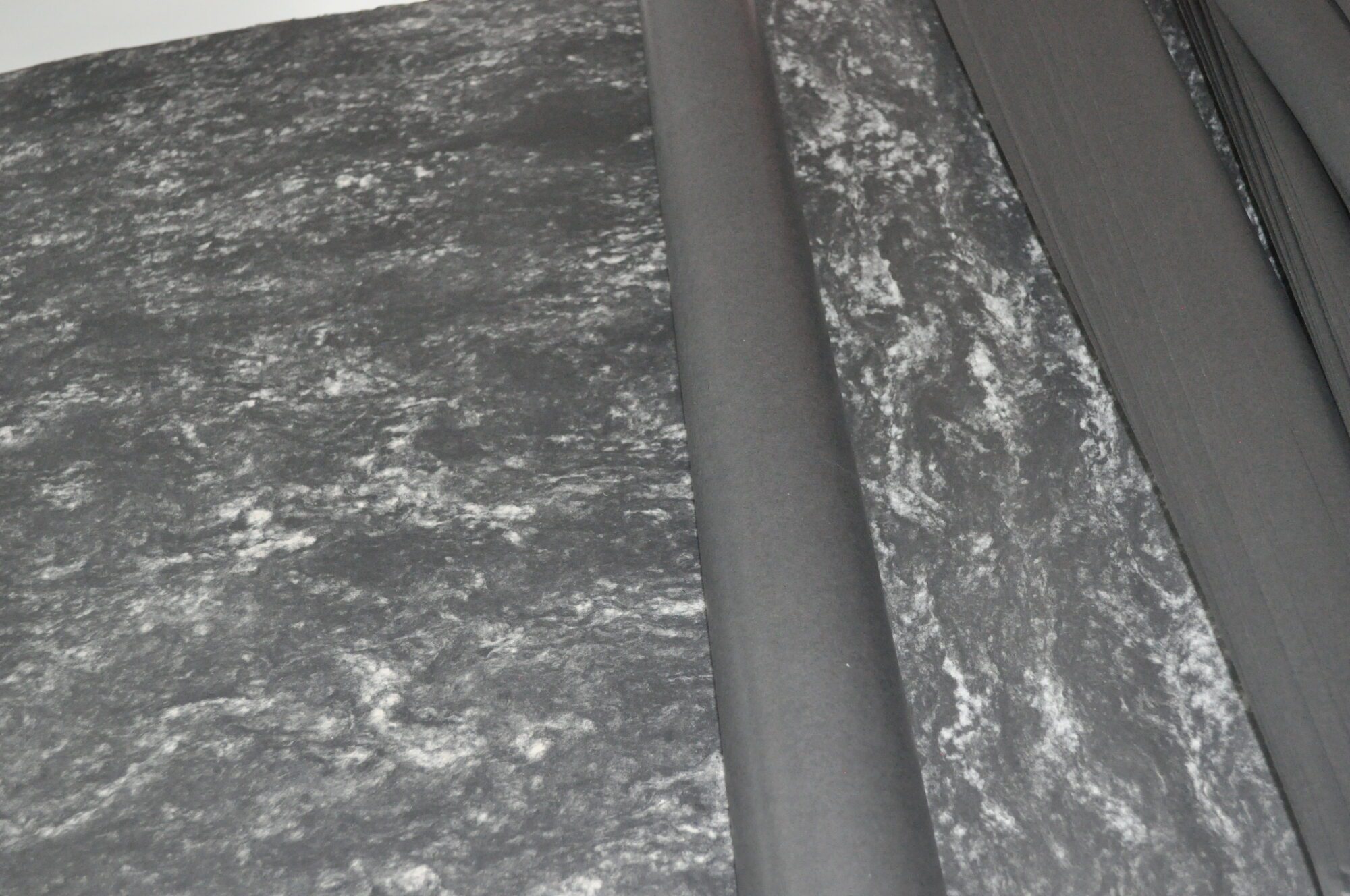 Ik zoek een nieuwe eigenaar voor een partij sierpapier met klassiek rook/marmerpatroon.