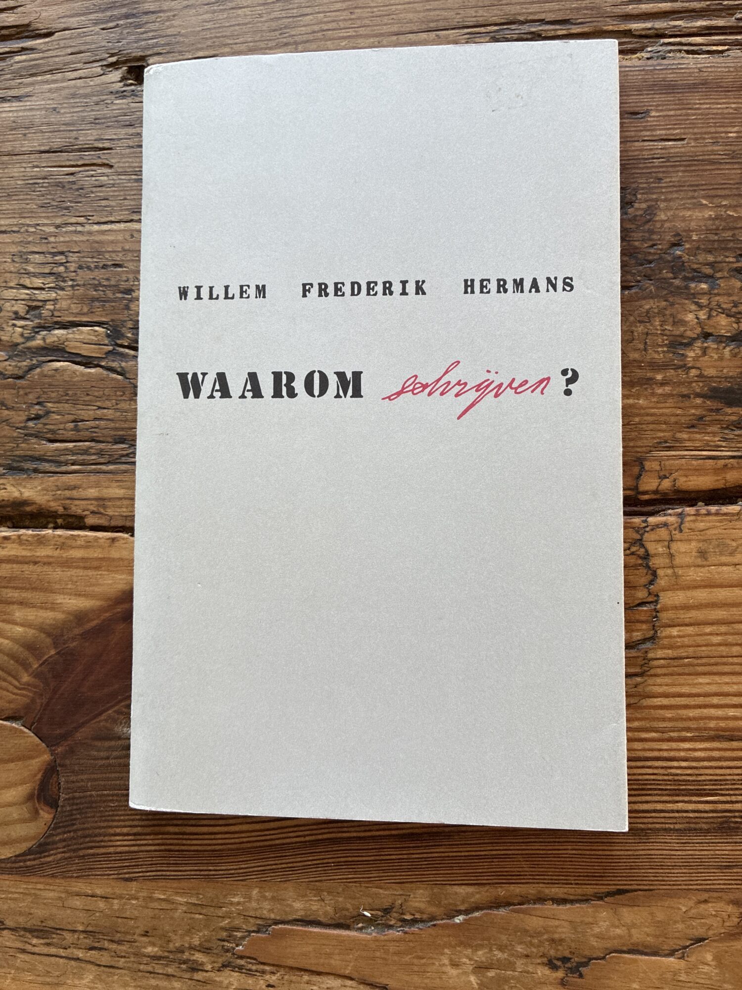 Overdruk van een tekst van Willem Frederik Hermans, oorspronkelijk verschenen als nieuwjaarsgeschenk (‘93/‘94) van Uitgeverij De Harmonie, waarin hij beschrijft hoe (en waarom!) hij tot schrijven is gekomen.