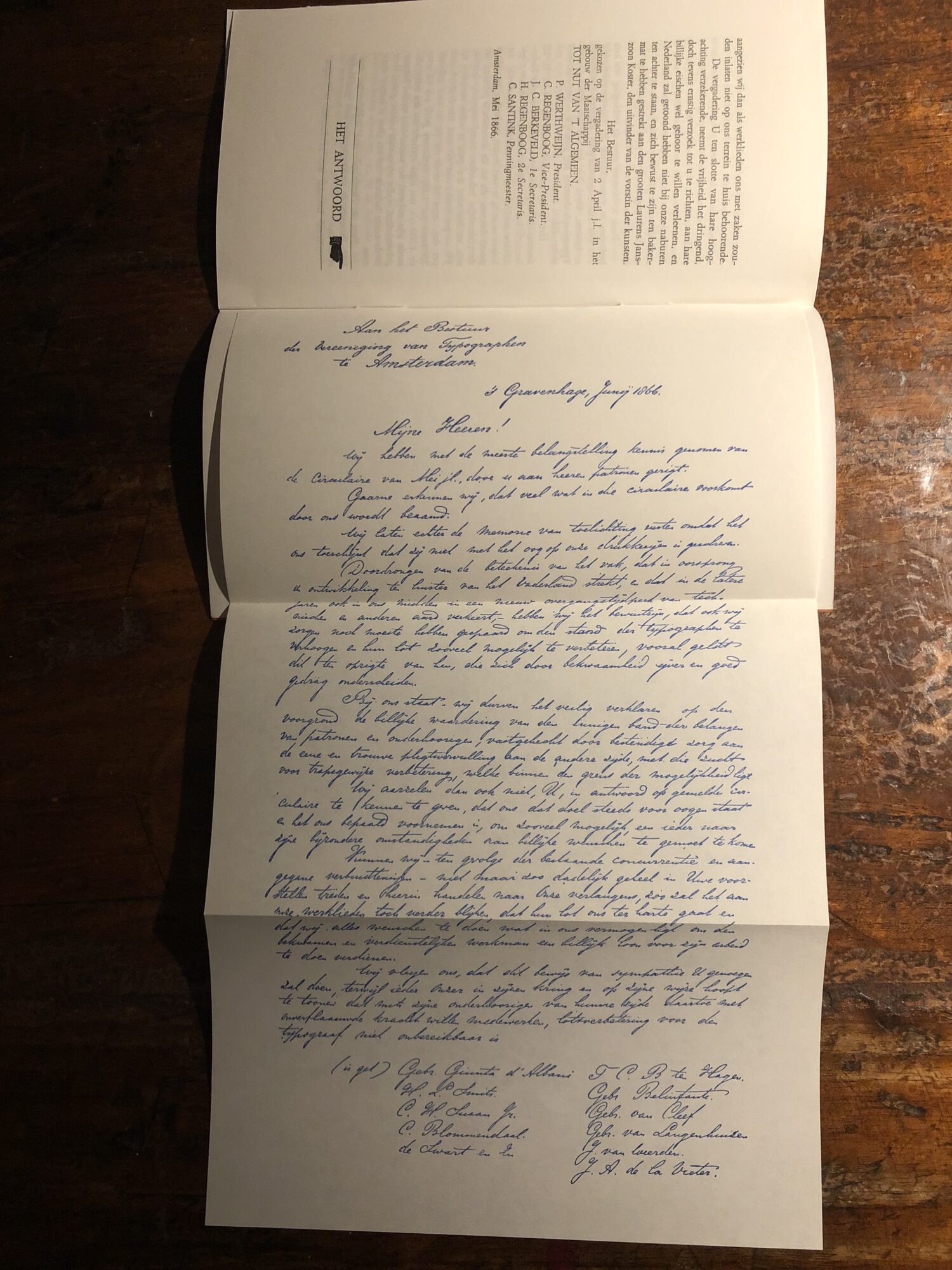De verzekering, dat dit schrijven niet van allen, die zich onder de typographen vrienden der vereeniging noemen, is uitgegaan, doet ons hopen, dat ook van andere zijde blijken zullen worden gegeven van belangstelling en medewerking.