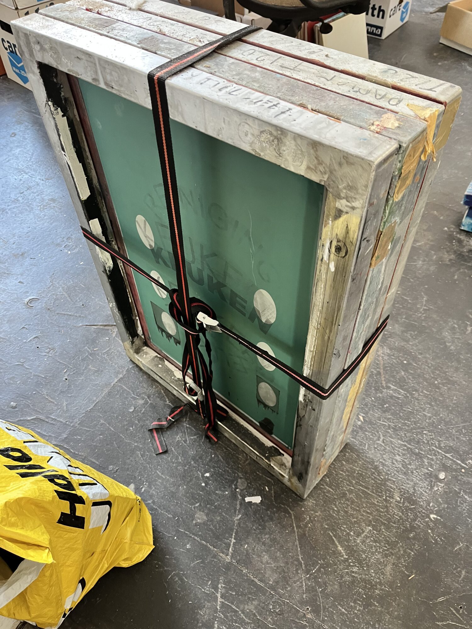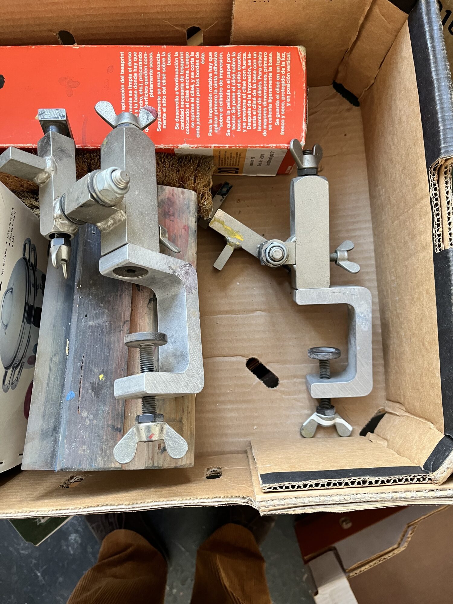 Zeefdrukramen (moeten schoongemaakt) HPR lamp + trafo en professionele tafelklemmen