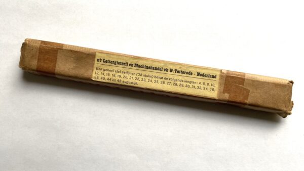 Nieuw stel koperen zetlijnen, 28 afmetingen in originele verpakking van Tetterode